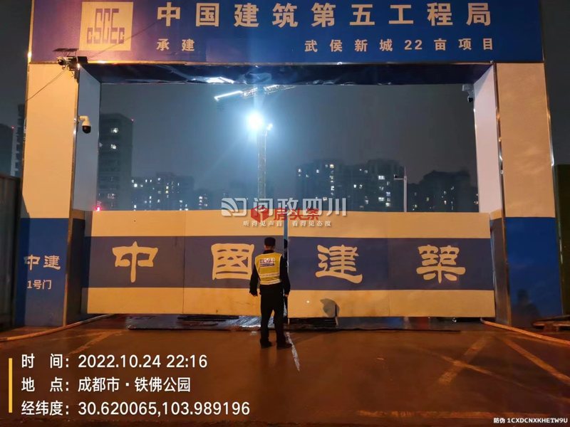 近日,位于成都市武侯区铁佛公园地段的华润置地锦观首著项目工地连续在夜间施工,10月25日,武侯区综合执法局对其进行了调查并要求其停止夜间施工。