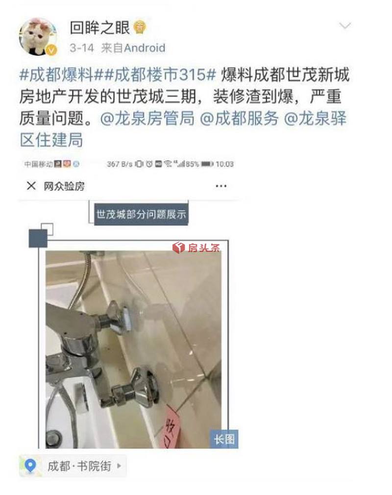世茂城是世茂地产位于成都龙泉驿的一个800亩大盘,规划面积200万方,是中签率只有1.31%的神盘,也是成都世茂地产的招牌。可是世茂城业主却宣称,作为一个排名前十的地产上市公司,居然超越基本底线,签署霸王条款欺骗业主,给业主制造了大量装修垃圾。维权业主找开发商沟通,世茂居然根本不理。世茂城三期的业主花了40多万的装修款后不得不再花几万元请工人砸掉重装。