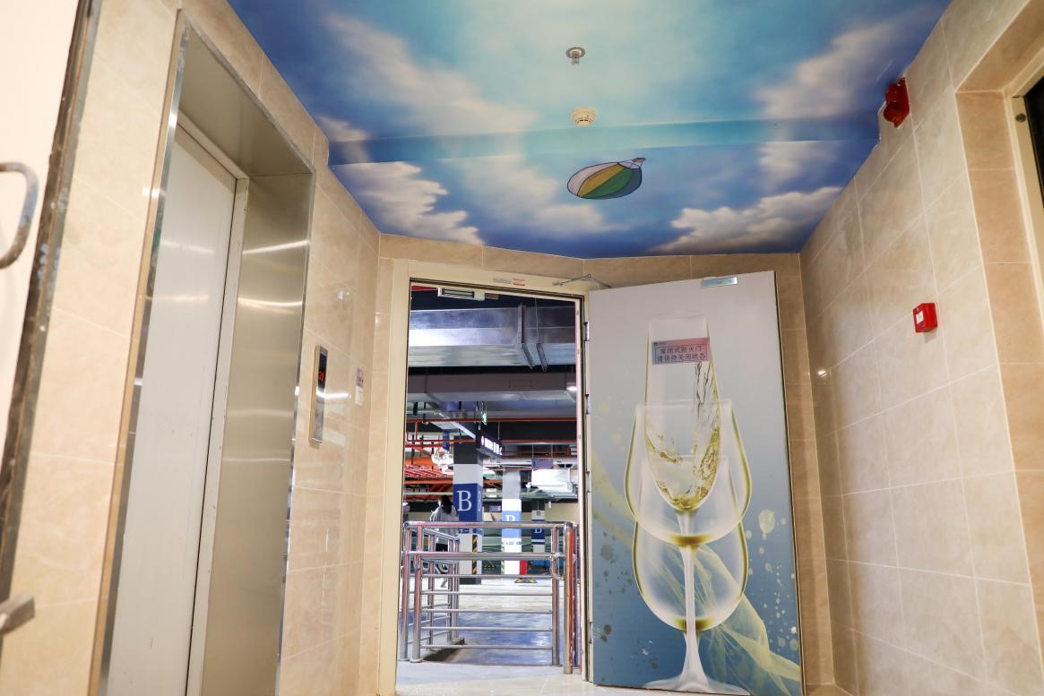地下停车场作为云南映象三期又一处的细节优化提升,来到负二层,便看到硕大的清晰标识,顶上整齐的管道排布,手绘区是蓝白色相间的天空,有红嘴鸥在飞翔。“地下车库采用环氧树脂与地坪漆,保证实用性的同时美观度也提升了, 前期管线设计的施工方案运用了BIM可视化软件,在具体施工前就能看到实景呈现效果,打造了精细化管理、节约成本提高工期和效率的施工环节。”