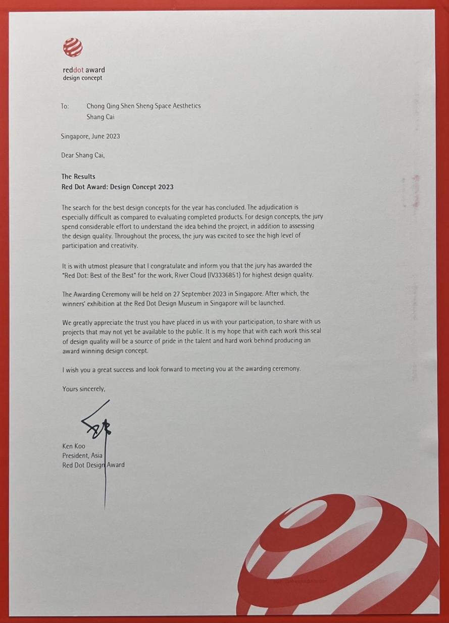 近期,重庆悦来的首钢云尚江来在刚刚揭晓的2023年德国红点奖名单中,以蔡上艺术作品“RIVER CLOUD”获得了红点至尊奖,为重庆艺术领域点燃了一把火。德国红点奖是世界三大设计奖之一,有世界设计界最大、最有影响力的竞赛之称,红点至尊奖获奖概率更是低于1%,此次云尚江来的“RIVER CLOUD”能获此殊荣,创下来地产界首次的历史。
