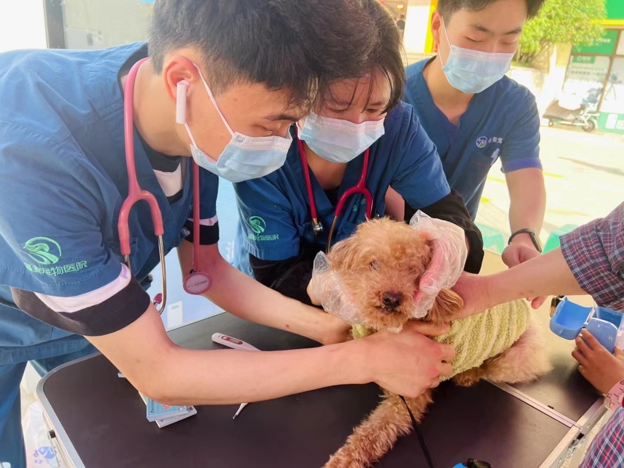 还有人招呼着邻居带上自己宠物前来给宠物医生瞧瞧。