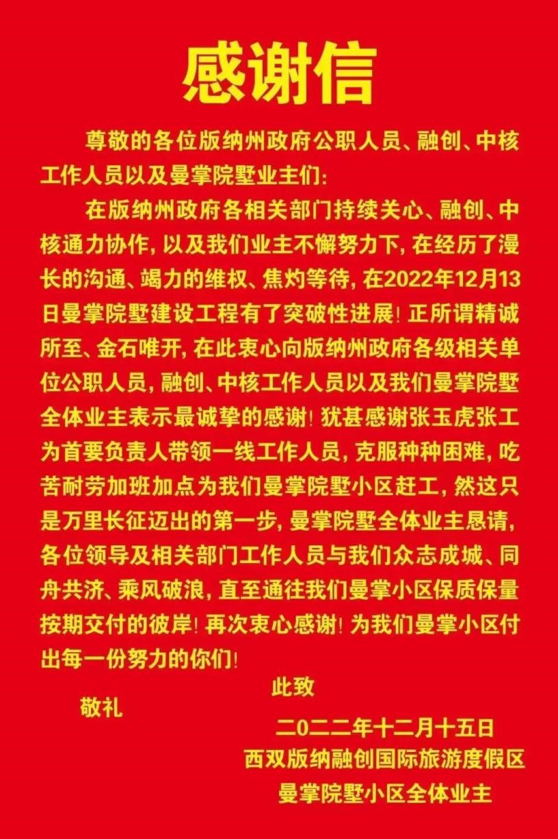 融创西双版纳旅游度假区对项目保交付也做了系列积极努力。一方面,项目上下多方奔走协调、积极联动资源,寻求政府和上下游合作伙伴等各方的理解和支持,政府深度参与资金监管的界面下,成立专项班、明确责任、形成机制,全力推进复工复产和保交楼工作。
