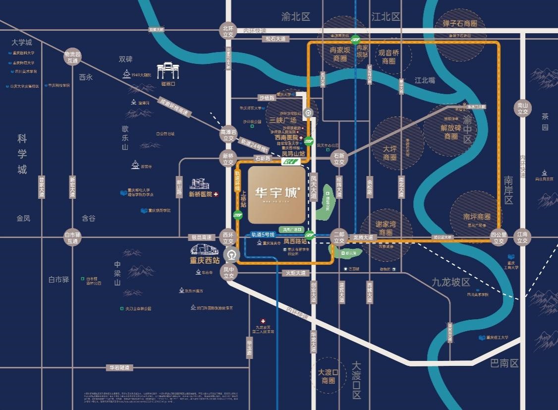华宇城|御璟缦云间以不可复制的地理位置,坐享约48万方购物公园商业配置,三轨道(环线、5号线、24号线(规划))、双高铁(重庆西站、沙坪坝高铁站)、双三甲医院(西南医院、新桥医院)、四大城芯公园、重庆图书馆、区政务中心加持,成为沙区置业风向标。