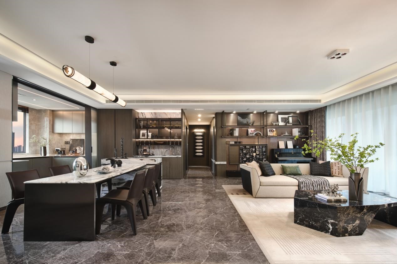 蓝翡翠、梵高灰、安哥拉黑等全球奢石随处可见,工艺上更追求手敲铜、编制皮等匠艺技法,肉眼可见的大师级审美、律动的曲线表达,天府·云河颂以极致标准,匠心营造出历久弥新的城市奢宅。