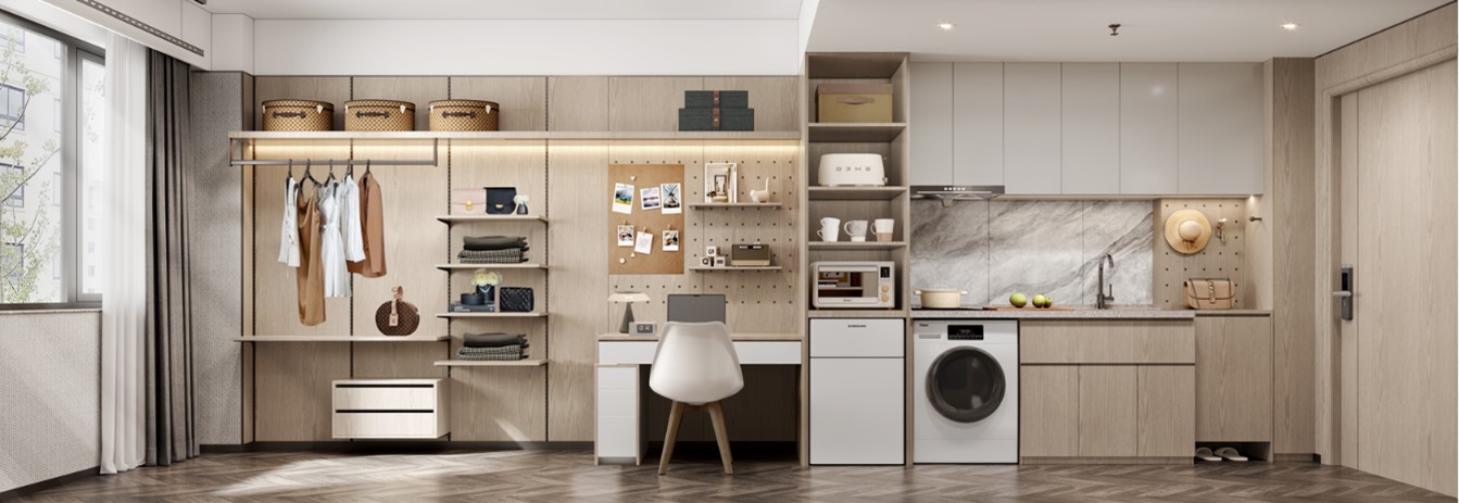 “无论是在房间还是到专属公区,让我在日常和周末想要做顿美食时可以更加应对自如。”沐沐说同样的便捷,也体现在工作上。“过去合租时在家办公效率很低,最后总会趴在床上办公,无法静下心来,现在去公区、或者在书桌,显然都是更优的选择呀。”沐沐说道。