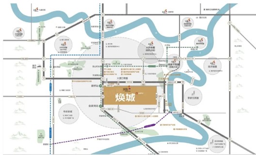 焕新城市的必要条件是要有超级动脉,焕城所在区域目前已经通车的内部道路、在建及规划的线路,共同构成了“八纵八横”的骨架路网。轨道交通也基本实现区域全覆盖,不仅有通车轨道2号线,在建轨道5号线和18号线,还有规划轨道12号线、21号线以及29号线大幅拉近焕城和主城各板块的距离。