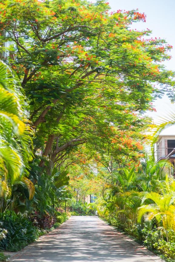 融创以符合发展导向的特色康养文旅产业为依托,在自然风貌与城市人文风貌之间形成以“康养”为主题的全龄友好社区。社区规划上保有场地原有的历史厚重以及生态环境,打造约25万㎡湿地公园;优选数十种热带植物,打造东南亚园林景观,让游客在这里回归自然,感受热带雨林的魅力。