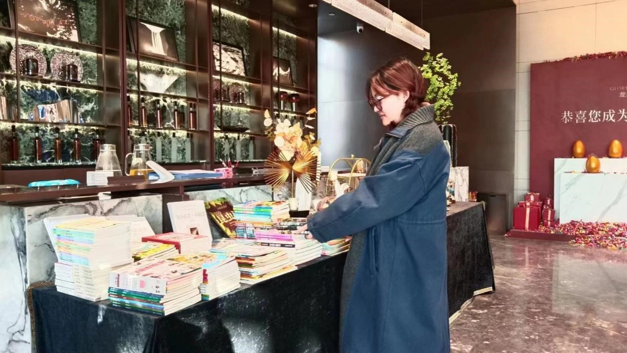 图说:北京龙湖顺义御湖境售楼处客户正在捐赠图书
