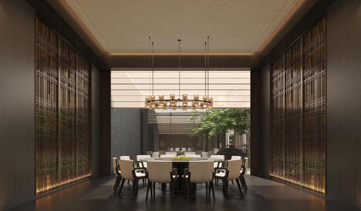 米其林级私宴厅:纯手工打造琉璃屏风,高阔穹顶,予贵宾盛情款待。