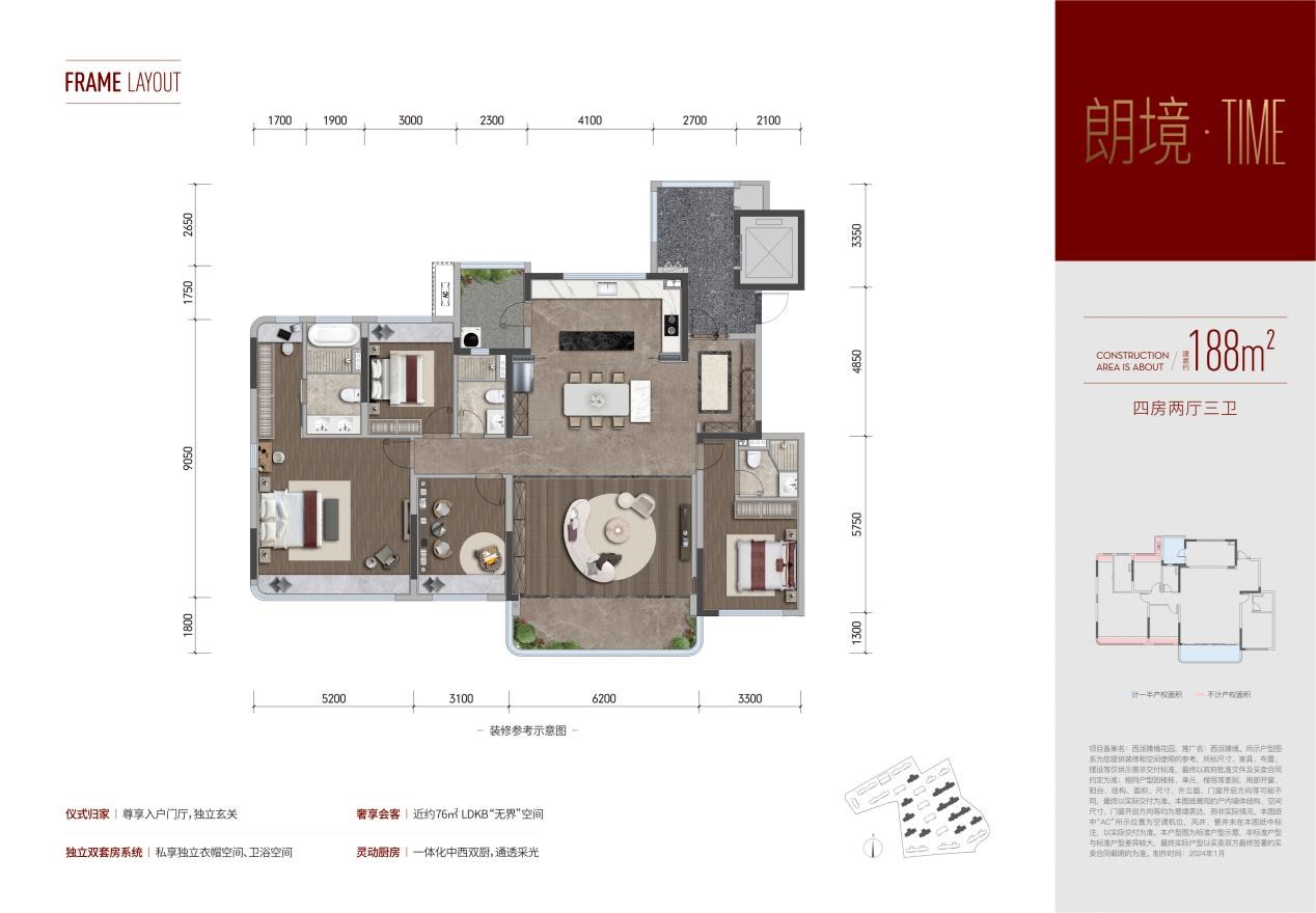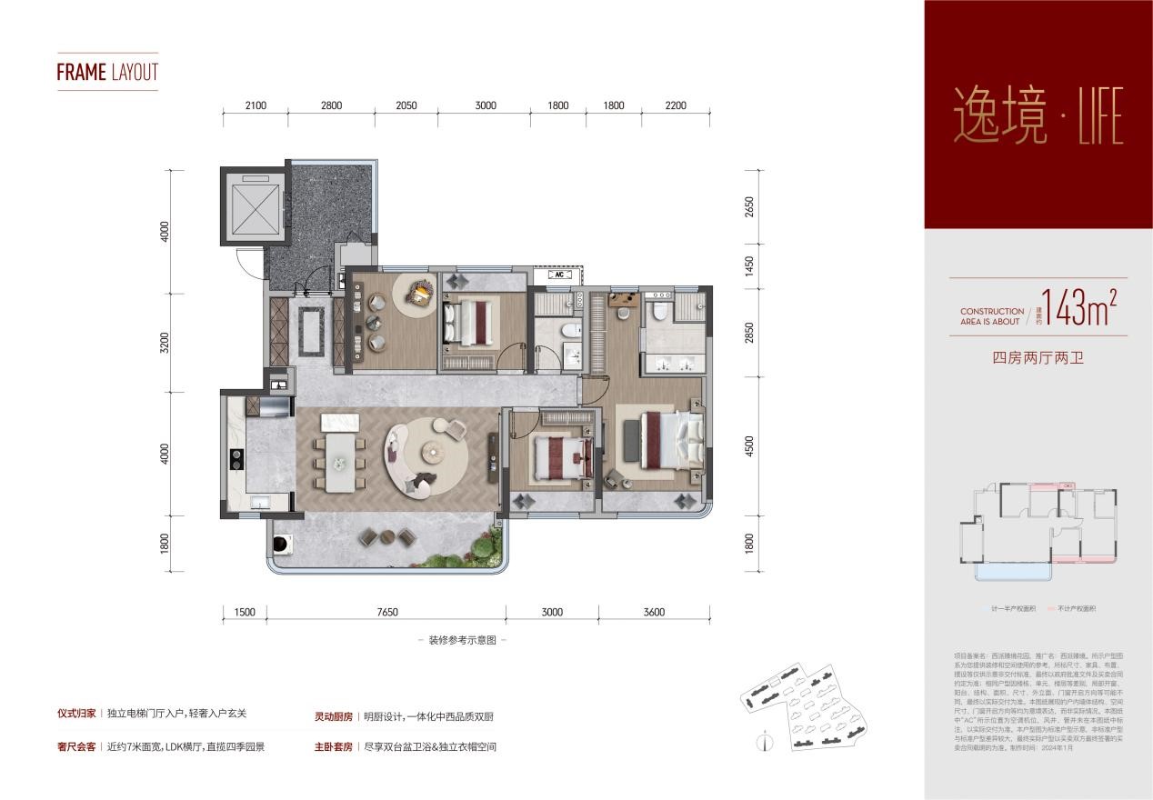 正是在上述拥有突出交通、教育、商业、医疗等优质资源的区域,中国铁建地产根据市场需求,选择布局了全新的“西派双子”项目,承袭西派4.0产品基因。据悉,这一次,中国铁建地产在西派城、西派城央的基础上,西派臻境面向全城设计了主力建面约143㎡、建面约188㎡和建面约225㎡的产品,其中,188㎡及以上户型占比接近60%,尤其值得注意的是以上户型均为四房低密洋房,最大卧室开间尺度约7.9米,毫无疑问将产品卷出了新高度。