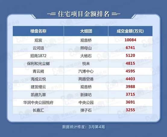 在铭腾机构3月第4周发布的住宅项目金额TOP10排名中,中央公园悦府再度登榜列席,凭借其强大的市场影响力和号召力,持续引领重庆高端改善市场。