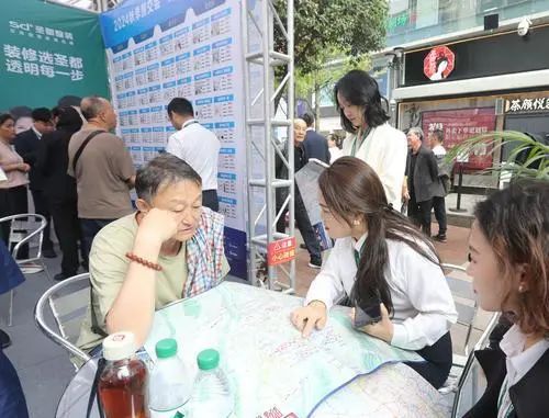 10月9日,2024重庆秋交会线下展会在江北区观音桥步行街开幕。图为,不少市民正在咨询二手房。
