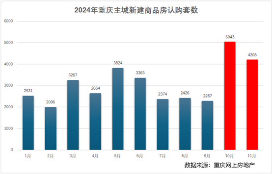 在9月份开始的楼市密集新政的叠加影响下,购房者正在加速回归楼市。以重庆市场为例,根据重庆网上房地产数据,10月份重庆中心城区新建商品房成交72.2万平方米,环比增长61.7%。在10月的高峰基础之上,11月,重庆主城新房成交51.88万平方米,同比去年10月成交量增长62%。从价格来看,项目折扣普遍收回,11月住宅均价环比上涨2%。
