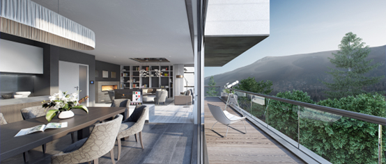而越秀地产也不负这块独特景观的稀缺土地,凭借卓越的产品打造能力,在产品设计上充分利用独特的地势,打造出临崖空中院墅产品,采取了层层退台+户户庭院的建筑设计,将庭院、露台、空中花园融合在建筑之中,让每一户都有大花园或大露台,实现“前庭后院”“前后双露台”的生活方式,极大地增加了空间利用率和得房率的同时,也让业主最大化地享受了绝佳城市景观。